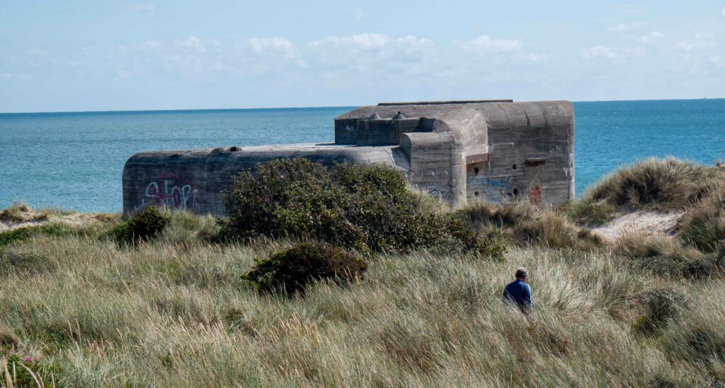 Hier, an der nördlichen Westküste Dänemarks hat sich die Deutsche Wehrmacht vor ca. 80 Jahren durch zahlreiche Bunkerbauten verewigt. Stellt sich die Frage, wieso die jetzt alle an der Ostküste stehen. Es wird sie ja wohl niemand da hin gebracht haben. Doch! Mutter Natur lässt Grenen im Westen pro Jahr um ca. zwei bis drei Meter durch Sandanspülung wachsen, während sie dieselbe Menge Land auf der Ostseeseite wieder wegnimmt. Damit sind die Bunker in den vergangenen 80 Jahren langsam von der West- an die Ostküste „gewandert“. Noch ein paar Jahre weiter und sie werden im Kattegat verschwinden – Dänische Müllentsorgung.