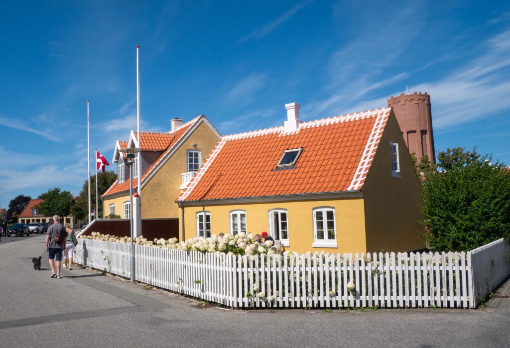 Dann ein Spaziergang durch das klassische Skagen mit seinen typisch gelben Häusern (wer die Farbe kaufen will, sie heißt“Skagen-Gelb“). Die sind übrigens deswegen gelb, weil der König hier einst ein Sommerhaus hatte bauen lassen und es gelb anstreichen ließ. Daraufhin wollten alle Leute in Skagen gelbe Häuser.