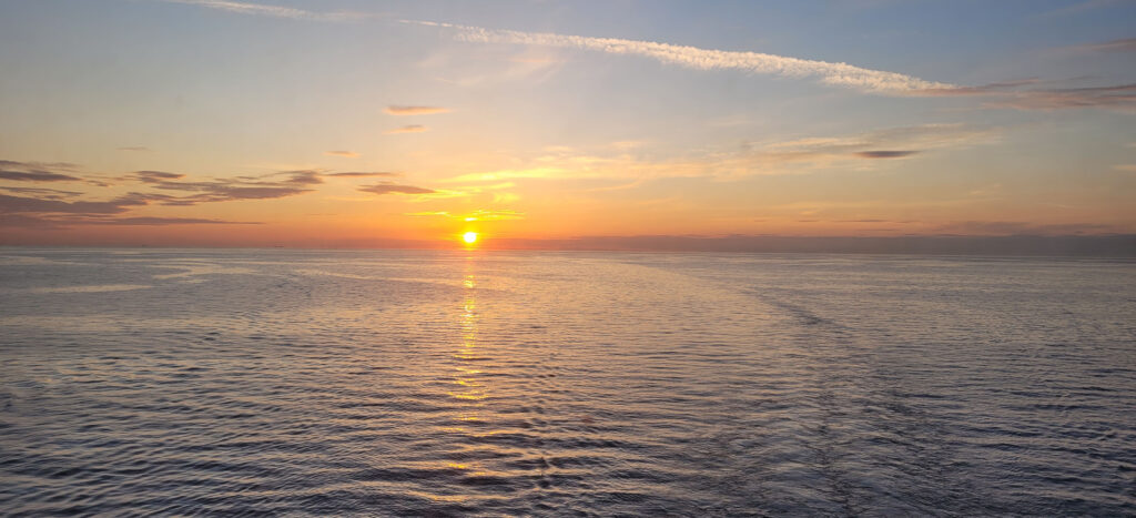 Während des gestrigen Seetags sind wir dorthin geschlichen – mit gerade mal neun Knoten Fahrt (da schaut man aus dem Fenster oder vom Balkon und denkt, hinten schiebt die Mannschaft den Kahn).
